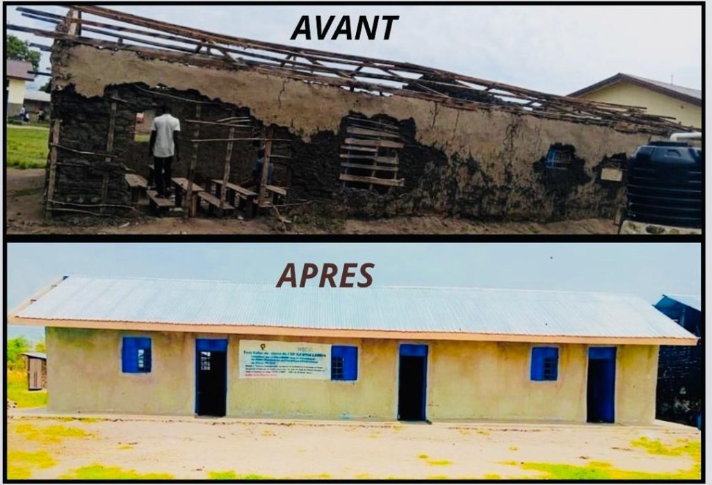 Ilustration d'une salle de classe réhabilitée de l'EP 2 Zubula à tchioma en territoire de Djugu