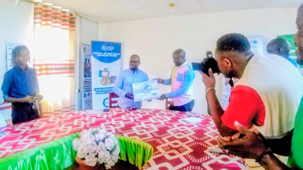 La cérémonie officielle s’est déroulée dans la grande salle du bureau administratif de l’AJEDEC, en présence des agents et cadres de l’organisation. Le diplôme a été solennellement reçu par Jean de Dieu DJARI, Directeur de programme, représentant le Directeur exécutif  BIRIDO TSATSI Aimé.